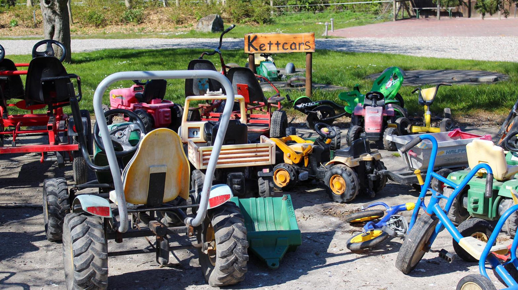 In der Mitte des Hofes lädt der Spielplatz , die Fußballwiese , die wilde Seilbahn und die vielen Gokarts zum toben ein .